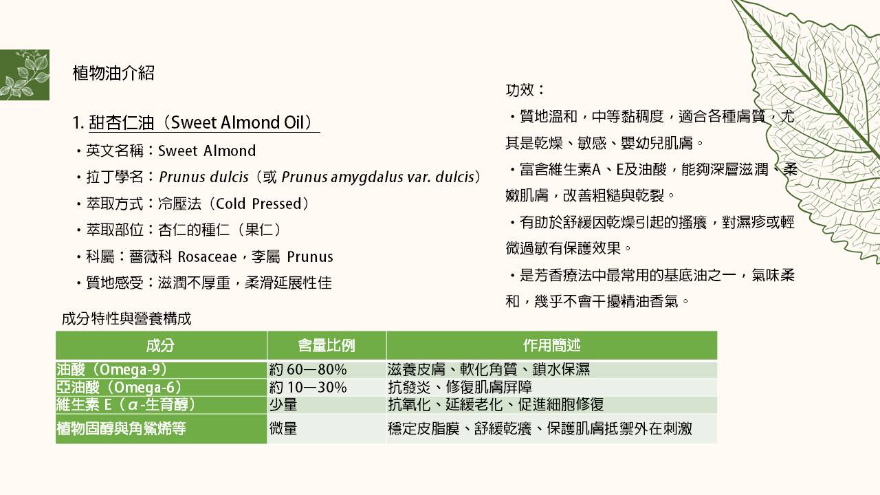 植物油又稱為基底油、基礎油,在芳療中扮演不可或缺的角色,因為精油的濃度很高,如果想要將精油塗抹到身體上,通常會透過植物油來稀釋,幫助精油進入皮膚中。